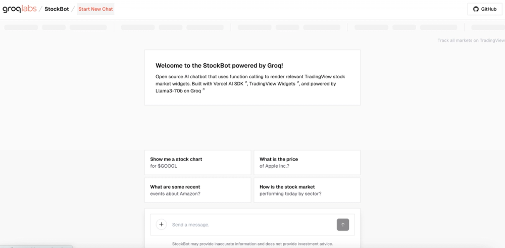 StockBot is an AI chatbot providing real-time stock data, interactive charts, and financial analysis using Groq and Vercel AI SDK.